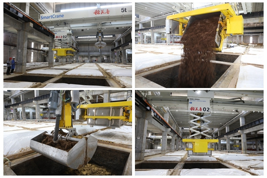 秦玉龙鸣笛发令,启动馫香型白酒生产酿造。智能起入窖机器人根据指令平稳运行,投窖、起糟、转运……整个过程行云流水,充满了现代工业的美感与力量。领导及嘉宾移步至右侧安全护栏旁,一同观摩智能行车入窖、起糟工序。